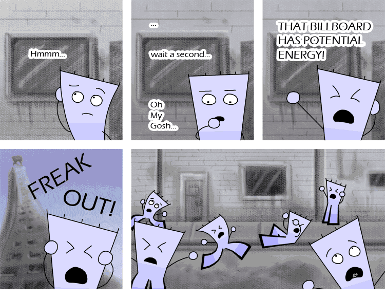 Now I only just realized this... But most causes of death start as potential energy - and that stuff is everywhere. EVERYWHERE! There's a good chance that right now, at this very moment, you are being threatened by potential energy. Now, do not panic. But definitely be concerned about it... yes...